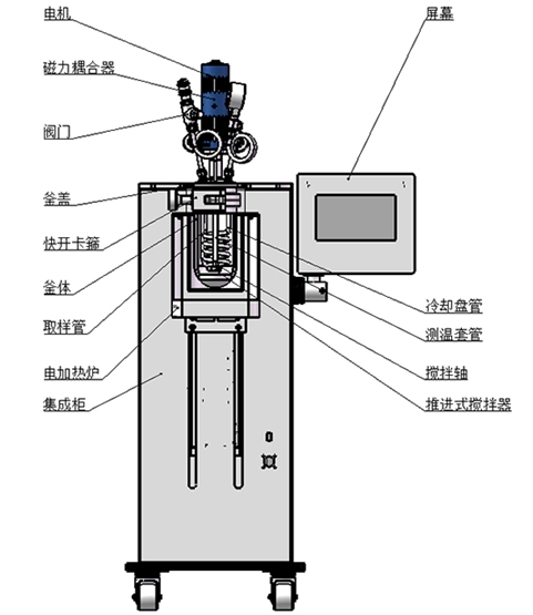 產(chǎn)品功能和特點:升降型式,機電一體化設計、結(jié)構(gòu)緊湊;框架支撐結(jié)構(gòu),配腳輪方便移動;主體可快開設計,開閉釜操作方便、快捷;升降輔助機構(gòu)方便操作,手動/電動可選;高扭矩磁力傳動,配優(yōu)選電機,提升運行穩(wěn)定性;攪拌支持定制槳葉類型,適配多樣化攪拌需求;加熱爐傳熱快,均熱效果好,效率可調(diào);真彩色觸控屏,模塊化顯示,控制界面操作簡潔;支持遠程控制,具備RS485通訊口,配上位機軟件;可顯示工作時間/溫度/轉(zhuǎn)速/壓力,PID自整定控溫精準;具備安全連鎖功能,超溫超壓報警;具備數(shù)據(jù)采集,記錄以及報表導出功能;支持選配加料、計量、取樣、冷凝等擴展功能。
